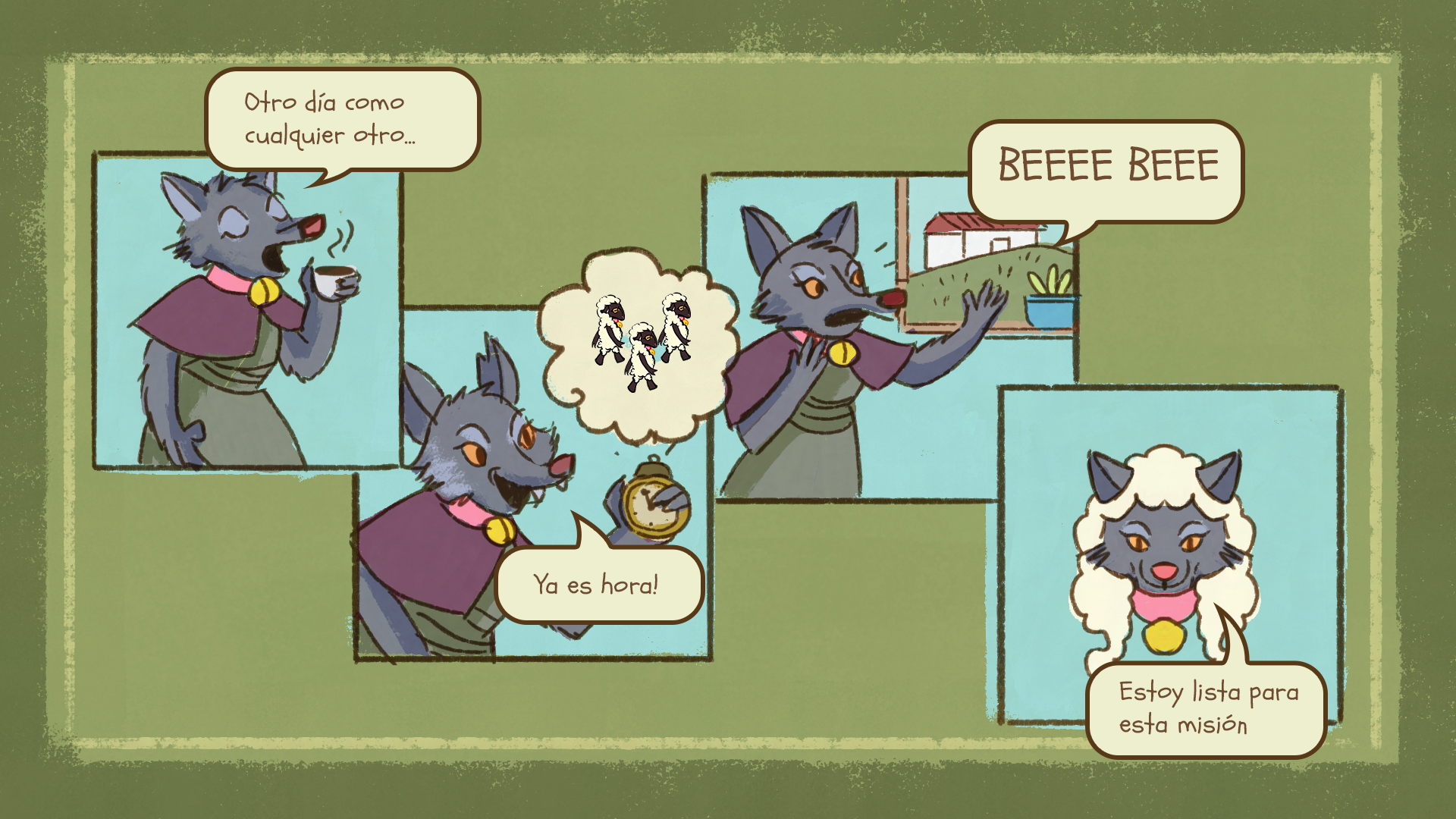 This single-player 2D game, created during Women Game Jam Colombia under the theme “Nothing Is What It Seems”, puts you in the role of a clever wolf 🐺 disguised as a sheep 🐑.