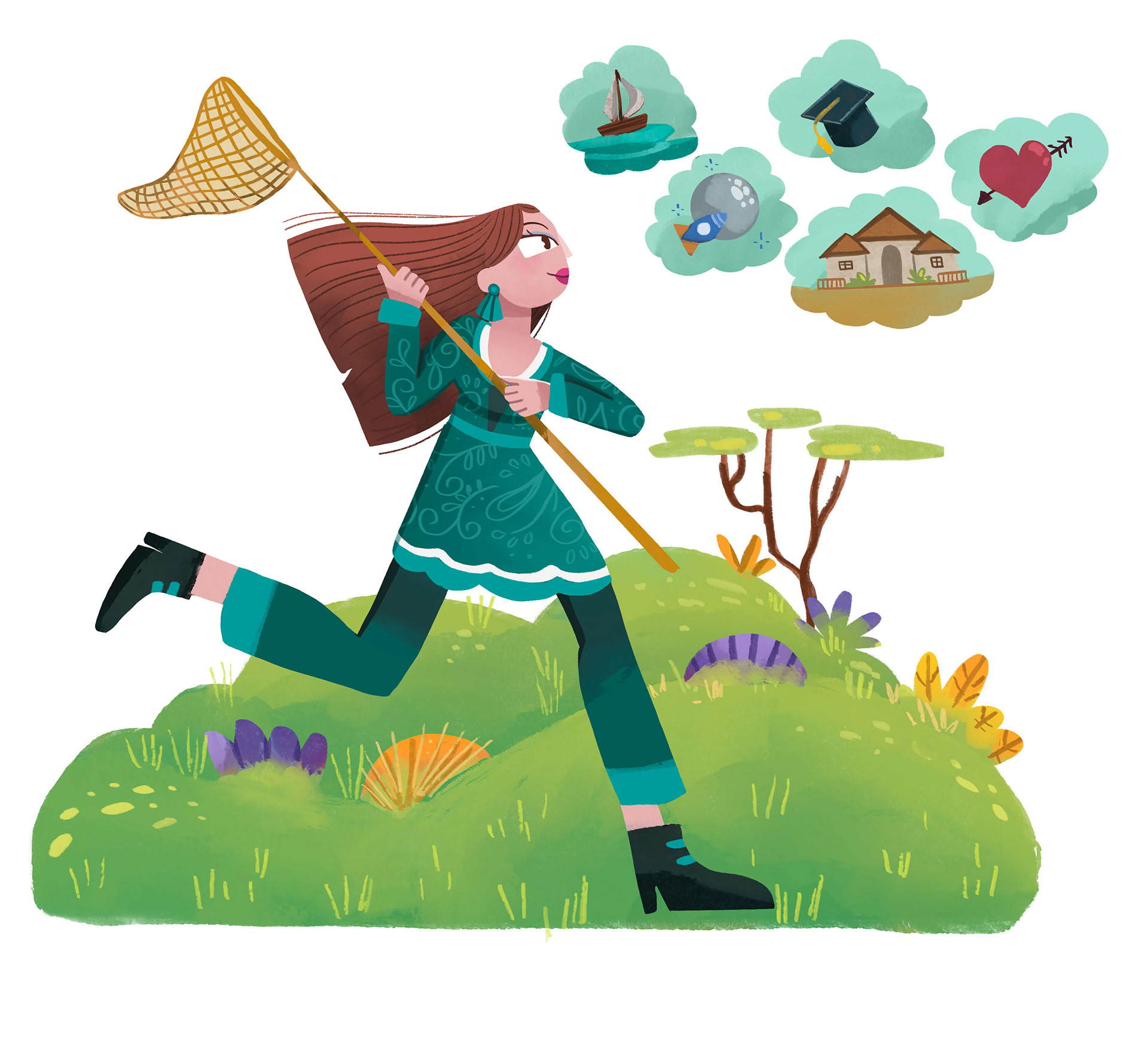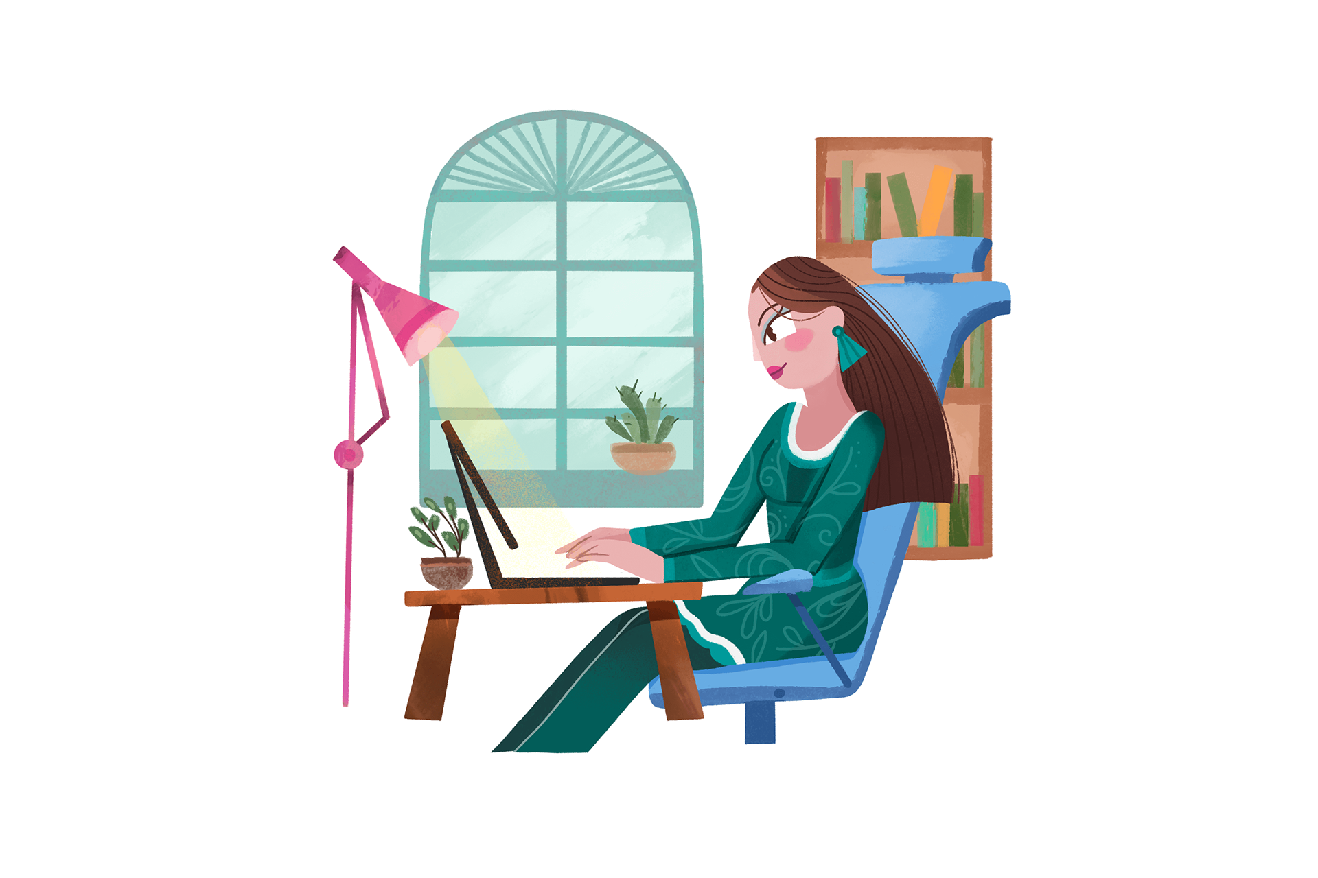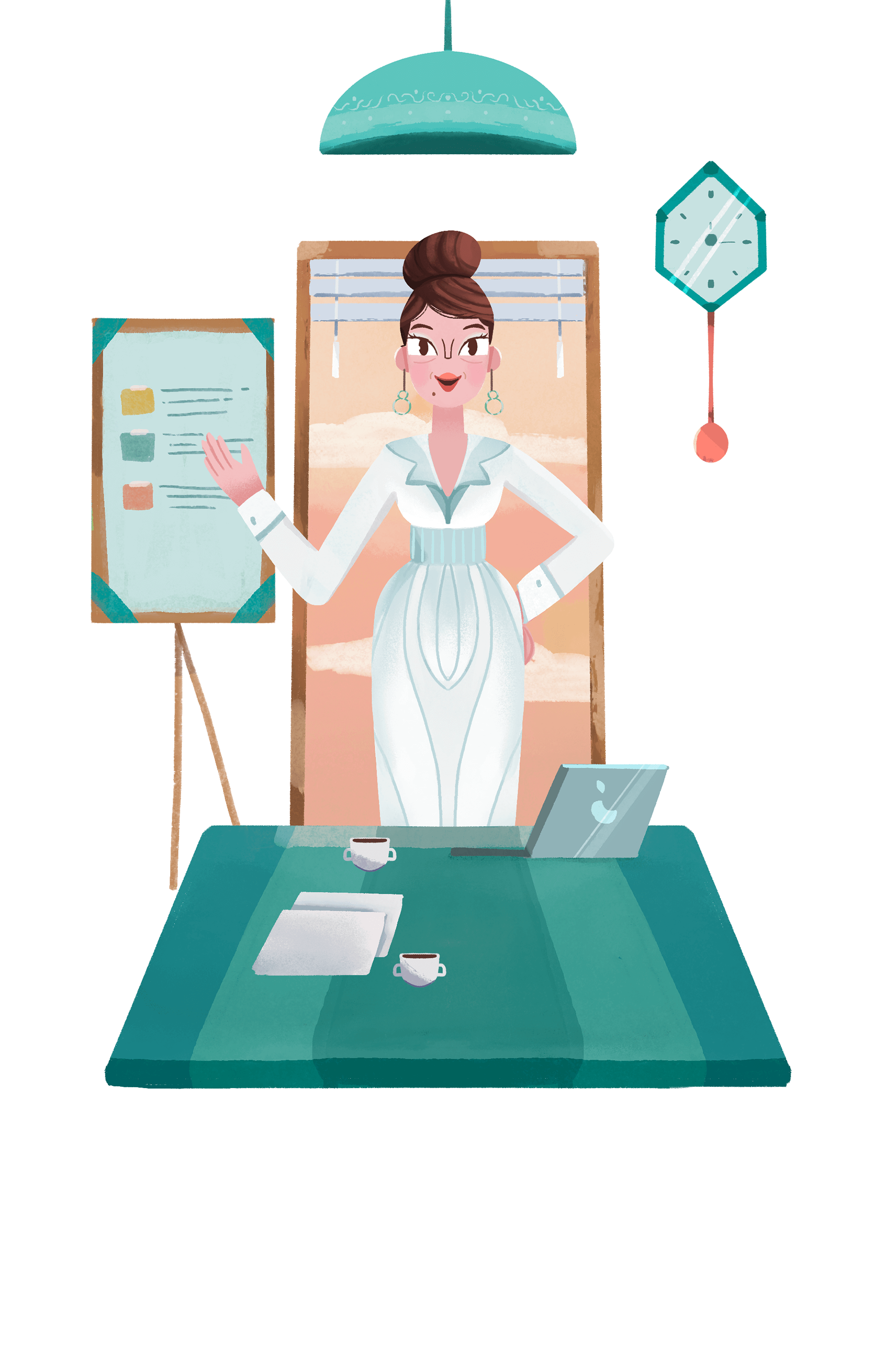 Design of a woman character to support content in a digital app.